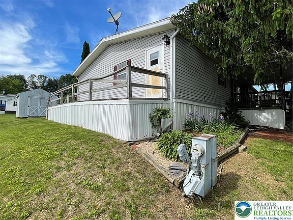 Looking for affordable housing? Then don't wait on this 3 bedroom, 2 full bathroom, double-wide manufactured home in Green Acres MHP in Parkland school district. The home features almost 1600 square feet of living space with a covered front porch and side deck. Upon entry you're greeted by the open concept family room, dining room, kitchen combination. Off the family room is the primary bedroom with ensuite bathroom which includes an updated Bathfitter shower/tub combo and double vanity. Down the hall are two more nicely sized bedrooms and an updated full bathroom. Off the large kitchen is a breakfast nook and your laundry room. Oil heat with a brand new oil tank and recently updated furnace (2019). Central AC too! Water heater replaced in 2024 and roof was replaced in 2012. Large storage shed outside for all your outdoor items as well. Monthly lot rent of $1098 includes water, sewer, trash, road snow removal and access to the community clubhouse, pool, and courts. Low taxes under $700/year. This home is priced to sell quickly and will not last long, so don't delay - see this one before it's gone!
