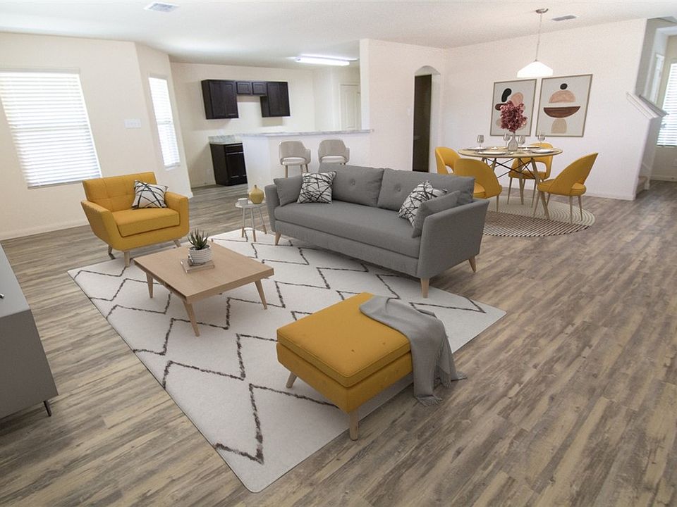 The Miguel Plan offers style and comfort in a spacious two-story layout with 3 bedrooms and 2.5 bathrooms. Enjoy open-concept living with a bright family room, modern kitchen, and dining area perfect for entertaining. Upstairs features a luxe primary suite with spa-style bath and walk-in closet, plus two more bedrooms and a convenient laundry room. Outdoor living shines with a covered patio and fenced backyard. Extras include vinyl plank flooring, a two-car garage, and smart design throughout. SimplyMaintained service covers lawn care and pest control for just $100/month. Leonard Crossing is a quiet neighborhood in Bryan, TX, offering easy access to Highway 6 and Texas Avenue for smooth commuting. The community is served by the Bryan Independent School District, ideal for residents. Residents enjoy nearby parks and walking trails, with Briarcrest Park just a short drive away. Shopping, dining, and entertainment options are also close by, making it a great spot for both relaxation and convenience.