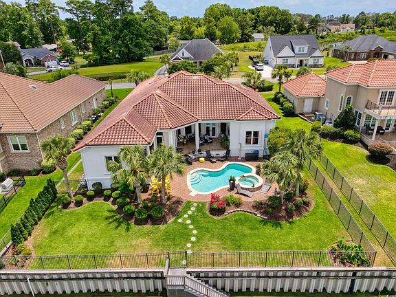 This is the one you been waiting for, a magnificent Mediterranean style home built by Pinnacle Homes with all the upgrades you can imagined. High Open Ceilings with recessed lightning, master suite has 2 walk in closets. Ensuite has has hers and his vanities, with jacuzzi tub and a open end large tile shower area. Kitchen has all stainless steel appliances with double ovens as well as a sizeable pantry, granite countertops. Home includes an inground pool (pool heater is inoperable and never used) and spa with water fall, a covered 13,000 pound boat lift with a floating dock and (2) jet ski ramps. Also owner has a engineered blue prints for a roof over the stationary deck over the water . The pool side of home has a wrap around lanai overlooking the waterway as well. Also, has a whole house generator with surge protection. The Co Listing Agent is the owner and a SC Real Estate Salesperson. Large Lot with mature well maintained lawn. SQUARE FOOTAGE IS APPROXIMATE AND NOT GUARANTEED. BUYER IS RESPONSIBLE FOR VERIFICATION.
