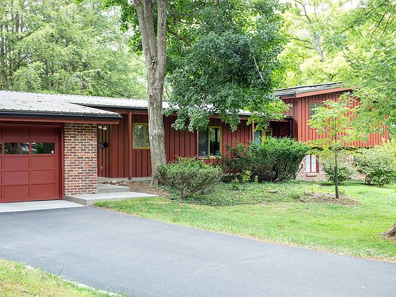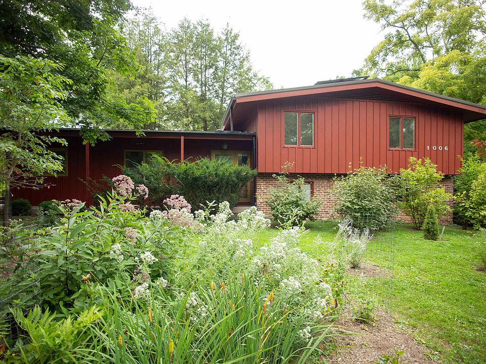 Immerse yourself in timeless design in this meticulously cared-for mid-century modern home. Custom built with enduring quality, this light-filled haven offers a peaceful retreat in the heart of town. Dual entrances on the main level provide seamless access from the garage to the kitchen or welcoming foyer. The natural flow continues into a grand living and dining room, where expansive windows, vaulted ceilings, and slate floors create a light and airy atmosphere. A stunning fireplace with walnut paneling adds warmth and elegance. The living area seamlessly connects to a beautiful and functional kitchen. Enjoy the natural light from the large windows. Upstairs, the thoughtfully designed layout features a study, two bedrooms, and a full bathroom. On the lower level, you'll find an additional bedroom, another full bathroom, and a spacious recreation room with backyard access and a second beautiful fireplace. The lower level also offers a laundry room, workspace, and utility area. A full-sized, light-filled garage completes the house. Native landscaping surround the house and creates a private and serene oasis. Solar panels, a high quality HVAC, and natural building materials reduce the footprint of this thoughtfully designed and maintained house. Recent updaters are numerous and attached to the listing. This architectural masterpiece is waiting for you to create lasting memories.