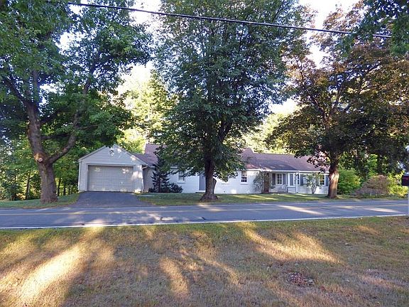 Wow, what a great location for this surprisingly spacious Cape. Sitting directly across the street from the South Amherst common on popular SE Street you'll want to make this one home. The 1/2 acre corner lot is semi-private with stone walls, walkways and supports a 2+ detached garage/barn and a 1 car attached garage. As you enter into the inviting foyer there is an amazing 20 x 21' great room addition with fireplace, built-ins, exposed beams and slider to the back-deck on your right. Heading to the left leads you into a beautiful formal dining room complete with fireplace, hardwood floors and lovely wainscotting. There's a good sized kitchen with brick floor and laundry closet for 1 level living; a rear hall leads you to 3 bedrooms and handicap accessible bath w/ walk in shower. Upstairs are 2 big bedrooms and full bath with double vanity. Selling for way under assessed value, some cosmetic updating is needed, but this is a solid, well maintained home in a winning location!