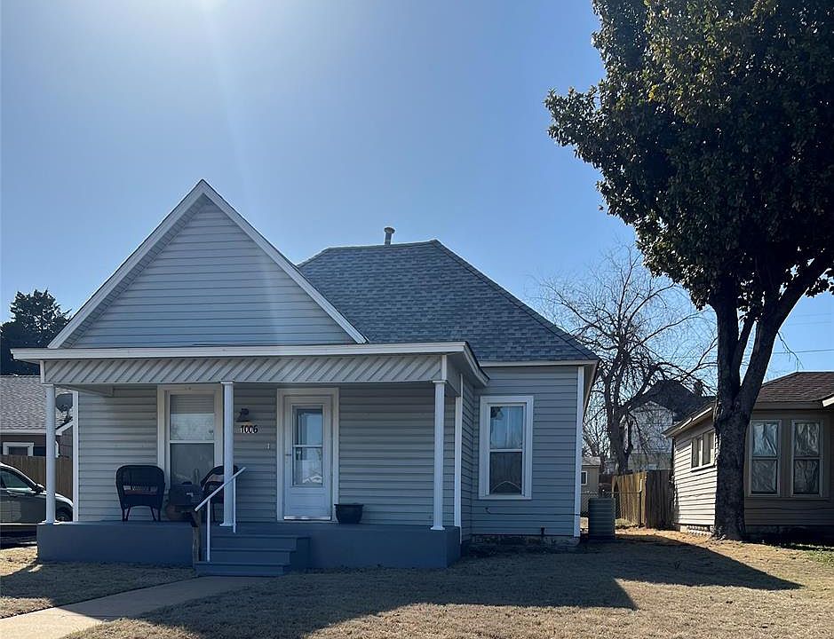Adorable bungalow in the heart of El Reno! 2 bedrooms, 1 bathrooms and a flex room. Updated kitchen and bathroom. With a detached garage and 2 outbuildings. One of the outbuildings offers electricity. Close enough to OKC (about 25 minutes) for any of your shopping and restaurant visits, yet nestled in central El Reno, surrounded by an inviting neighborhood. You'll love the hardwood floors, the chic colors, the unique backsplash in the kitchen, and the charming look of the bathroom. There is ROOM for a 3rd BEDROOM if needed. (Doesn't have a closet but the room is very spacious.) House does have an INSIDE UTILITY ROOM. The detached garage is "just right" for your work out desires or any other hobby or craft. Also, includes private back yard for your pets. Make your appointment to see this distinguished home today!