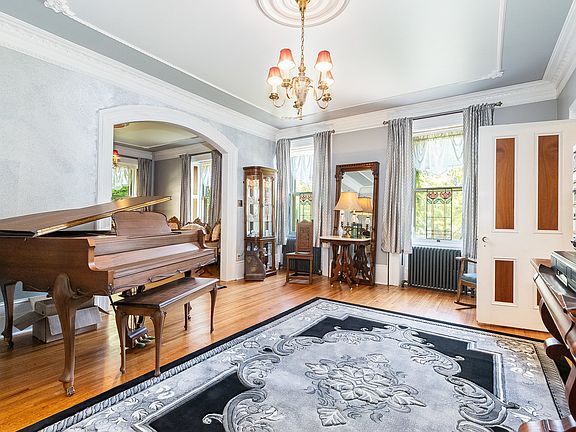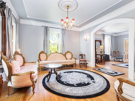 Back on the market due to financing! An extraordinary opportunity awaits to own a truly iconic Greek Revival hand-cut stone mansion, a historic gem just minutes from the heart of downtown Lockport situated on a large 3/4 acre (3 lots). Steeped in 1800s grandeur and lovingly preserved/updated by its fourth owners, this architectural masterpiece blends the opulence of a bygone era with refined modern living. Every inch of this distinguished residence has been thoughtfully restored and enhanced, honoring its craftsmanship while introducing high-end upgrades for unparalleled comfort. A rare historic luxury find! Beyond the stately facade lies a sprawling main level that impresses at every turn-from the grand front foyer to the formal parlor, elegant music/living room, and a serene screened-in porch. Entertain in the exquisite formal dining room, relax in the richly appointed family room with original fireplace, or work from the stunning office (a showpiece of historic woodwork and charm) complete with a second fireplace. The fully renovated eat-in kitchen is a chef's dream, boasting custom cabinetry, premium countertops, all 2022 SS appliances, a tin backsplash, butlers pantry and a separate walk-in pantry. A full bath, laundry room, and abundant natural light complete this first sophisticated level. Upstairs, find three generous bedrooms, including a luxurious primary suite with a spacious walk-in closet. A full bath serves the upper level, and a large unfinished walk-up attic provides limitless potential as well. The original hardwood flooring has been meticulously preserved throughout much of the home, with carefully chosen new hardwood flooring other in select areas. Additional features include a full basement offering substantial storage or expansion options and a crawl space, updated radiant heating with original radiators sandblasted and repressurized (2024), central vacuum system, and updated electric/lighting. The property's exterior is equally impressive: a four-car carriage house garage with a massive upper-level entertaining room, a brand-new wraparound driveway (2024). New tear-off roofs on both main house and carriage house aka garage (2022), and completely updated porches and walkways (2023). Comfort and efficiency are ensured with a new boiler (2017), new water heater (2025), and new water softener (2025). Several windows have been replaced as needed, or professionally restored, preserving the home's authenticity while enhancing energy performance. This rare, luxurious estate is not just a home-it's a piece of Lockport & Will County's legacy, masterfully curated for the most discerning buyer seeking historical prestige, architectural beauty, and modern-day luxury.