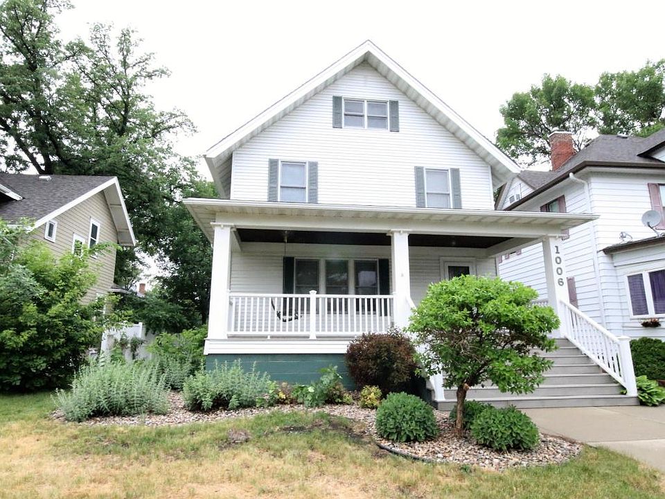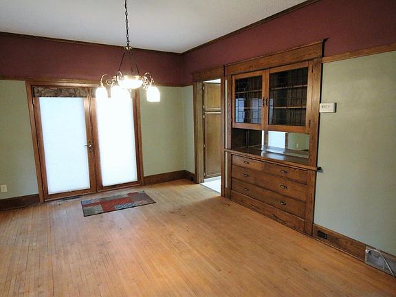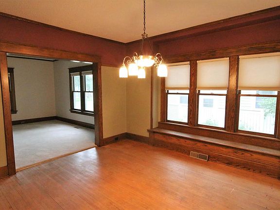 Fenced private yard, Metal siding, aluminum soffits, many newer windows, large deck leading from dining room. Hardwood floors throughout. Large 2 stall garage. Rough in for toilet in basement.