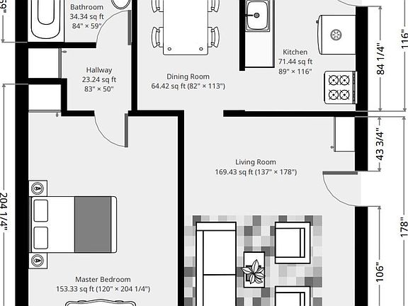 - Total interior livable area: 516 sqft