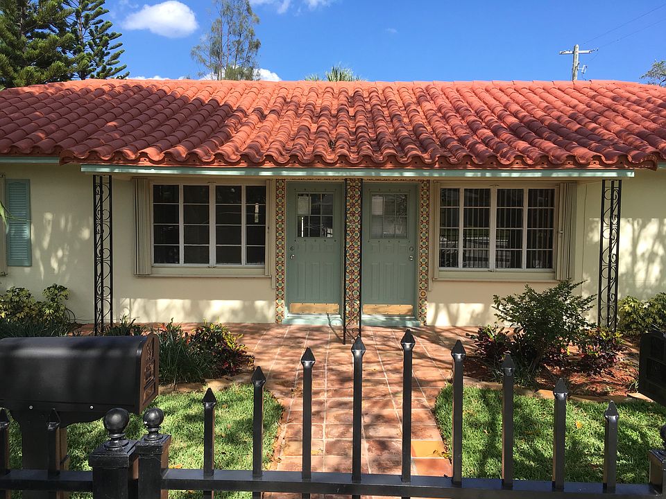 Cozy 1950 building duplex, great location, 2 bedrooms, 1 bath, covered back porch, with new kitchen cabinets, granite countertop, microwave, nice backyard