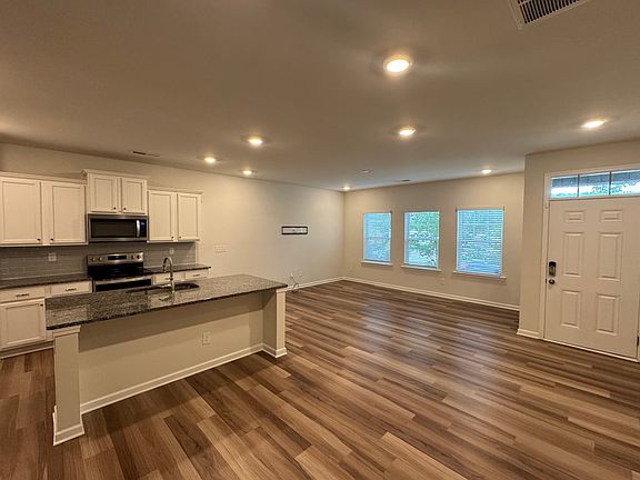 Welcome to this beautifully maintained townhome in the sought-after Sagecroft community just minutes from Sun Valley Shopping Center and offering an easy commute via Hwy 74 with quick access to Matthews. Step inside to a spacious, open floor plan enhanced by 9-foot ceilings and luxury vinyl plank flooring throughout most of the main level. The gourmet kitchen is a chef's dream, featuring granite countertops, a large island, 42-inch cabinetry, and stainless steel appliances. The main level also offers a generous guest suite with a full bathroom and walk-in shower perfect for visitors or multi-generational living. A conveniently located laundry room adds everyday ease. Step outside to enjoy a private patio, and take advantage of the detached two-car garage for added flexibility and storage. Upstairs, a cozy loft provides the perfect space for a home office or lounge. The expansive primary suite includes a walk-in shower with a built-in bench and a large walk-in closet. Two additional guest bedrooms each with their own walk-in closets share a well-appointed full bathroom. Tenant is responsible for utilities, internet/cable. Renters insurance is required.