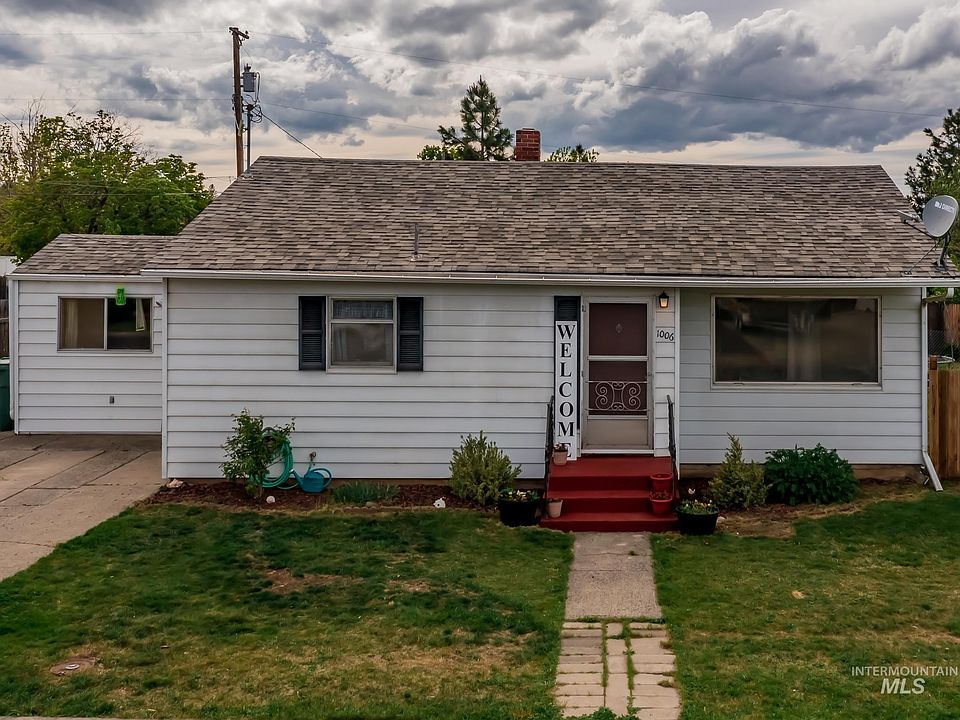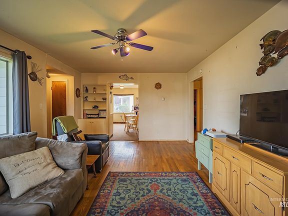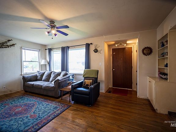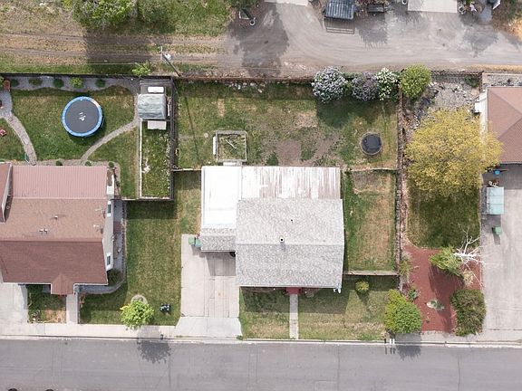Quiet neighborhood with views of the mountain. This 3-bedroom 1 bath home sits on a one-way street with very little traffic. Big lot with a front yard, flower beds, covered back patio, 2 driveway parking spaces, and room to park a camper. Animal lovers large fully fenced backyard with a cross-fenced side yard for garden or animals, mature lilacs, and one enclosed animal run (10x10) connected to the house with cat/small dog doors. Hardwood floors throughout. Sold as-is, needs new roof; price reflects.