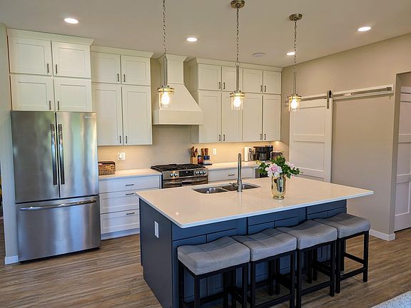 Step into contemporary luxury with this stunning ranch home boasting five bedrooms and three and a half bathrooms. Entertain with ease in the open floor plan featuring a spacious kitchen, dining area, and living room, seamlessly blending style and functionality. The kitchen offers modern amenities and a convenient walk-in pantry, while a covered deck off the dining room provides the perfect spot for outdoor gatherings. Retreat to the large family room in the basement for cozy evenings in. For added convenience, enjoy an oversized three-car heated garage, complete with an outlet for an electric car charger. Outside, indulge in the relaxation of a hot tub. This move-in ready home is the perfect combination of comfort and sophistication. Call today for your own personal tour.