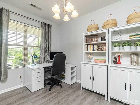 Charming home with AWESOME CURB APPEAL! CUL-DE-SAC CORNER LOT! LARGE WRAP AROUND FRONT PORCH for hanging baskets & rocking chairs! OPEN FLOOR PLAN! KITCHEN w/UPGRADED CABINETS, GRANITE, SS APPLIANCES & ISLAND! NEW LVP FLOORING & CARPET! FRESH PAINT! GAS LOG Fireplace in Great Room is a beautiful focal point! Don't miss the semi-fenced FLAT BACKYARD! SECLUDED from the main road, this neighborhood has a COMMUNITY POOL & is close to GREENWAY TRAILS! CONVENIENT LOCATION close to 540,440,40,& Downtown Raleigh!