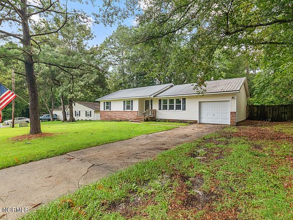 Charming 3-bedroom, 2-bath ranch-style home located on a peaceful cul-de-sac in Jacksonville, NC. Built in 1979, this 1272 sqft home features a durable metal roof, offering long-lasting protection. The spacious layout includes a comfortable living area and a well-appointed kitchen. Enjoy the convenience of being near shopping, dining, and Camp Lejeune, making this home perfect for military families or those seeking easy access to amenities. The sizable yard offers potential for outdoor activities and gardening. This well-maintained property combines comfort, practicality, and an excellent location in a quiet neighborhood. A must-see for any homebuyer!