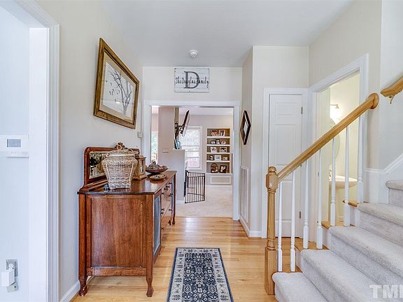 Custom built home in heart of award winning Apex! Ideally situated at the end of a private cul-de-sac. Hard to find, large, usable, fully fenced lot w/ mature landscape! Rocking chair front porch, & double entry door accentuate fabulous curb appeal. Site finished hardwoods at entry & DR. Custom window seat in breakfast nook. Newer designer light fixtures. Family room w/ raised hearth FP. Large master w/ WIC, & en-suite featuring new flooring! Alluring paint palette. Mere minutes to historic downtown Apex!