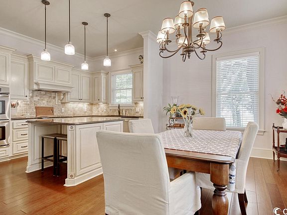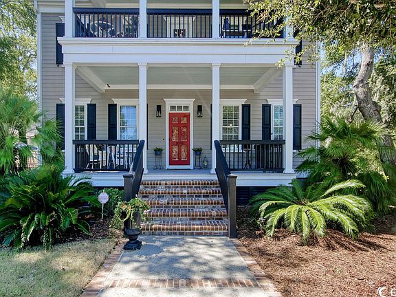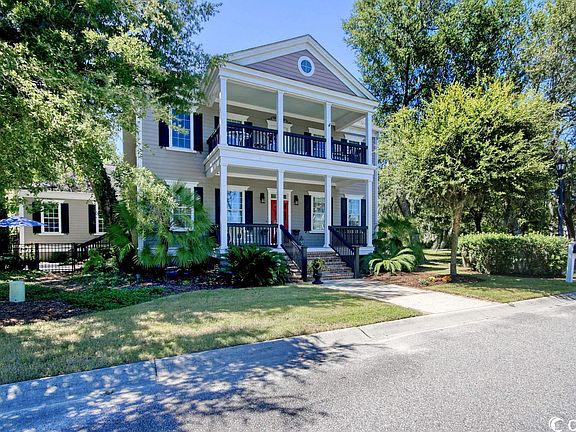 One of the prettiest houses in North Myrtle Beach and just steps to the Cherry Grove marsh and community clubhouse and pool. This 3 BR/3.5 BA quality construction custom home is a true example of authentic historical Charleston. Just the view from the street is spectacular. Spanish Moss filled trees, bullnose brick steps leading to the front door, deep upstairs and downstairs porches with piazza blue ceilings, and a side courtyard with tabby patio. Flooring consists of hardwood throughout most of the house, brick in the downstairs flex room, tile in the baths, and carpet in the upstairs bedrooms and craft room. Ceilings are of ample height - 10 ft. on the ground floor and 9 ft. on the second floor. The kitchen offers plentiful cabinet space, a large island, Kenmore Elite appliances with vented hood, and generous pantry while the living room features a gas fireplace with built-ins on either side and French doors leading to the flex room which has access to the side courtyard. The primary bedroom is ground level and boasts a huge walk-in closet and bath with linen closet, dual sinks, water closet, walk-in shower, and tub. The spacious upstairs boasts 2 bedrooms, each with their own bath, a craft room (or another flex), and a wide corridor (a room in itself) leading to a reading nook and the upstairs porch that overlooks the neighborhood lake. Other highlights of this home include spray foam insulation in attic and underneath the house in the crawl space; plastic liner and dehumidifier in the crawl space; two HVAC units - one up and one down (downstairs replaced November 2023); 3 full car garage with built-in storage and storage cabinets that will remain; additional driveway space; tankless propane water heater; gas line for grill in courtyard; irrigation system with sensor; gutter guards with transferable lifetime warranty; designer lighting; wired whole house generator; extensive trim detail, including 7" baseboards and crown moulding on interior and exterior; sound, camera, and alarm systems; Kenmore Elite washer and dryer; and more! The sellers have an American Home Shield Gold Plan home warranty that will transfer. The Charleston Landing community, situated along Cherry Grove marsh, is just a few miles to the Cherry Grove and Ocean Drive beaches in North Myrtle Beach. The amenities include pool and clubhouse with a panoramic view of the marsh, lake with fountains for fishing, playground, basketball court, cookouts, luncheons, and activities such as book clubs, crafts, etc.. This is true Southern Living! 1008 Tarpon Pond, the lot next door, is also available for sale by this seller. MLS #2310531. Minutes to restaurants, shopping, entertainment, marinas, and golf. Measurements are approximate and not guaranteed. Buyer is responsible for verification.