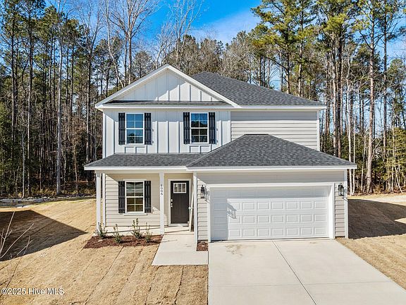 This stunning new construction home on a .30-acre cul-de-sac lot features 4 bedrooms, 2 full baths, and a half bath on the first floor. The two-story design includes a welcoming foyer, flexible space, and an open kitchen/dining/great room. Additional highlights include a second-floor laundry room, covered front and back porches, and a front-facing double car garage. The modern kitchen boasts an island, granite countertops, and a smooth-top electric range, complemented by a mix of luxury vinyl plank, luxury vinyl tile, and carpet flooring.