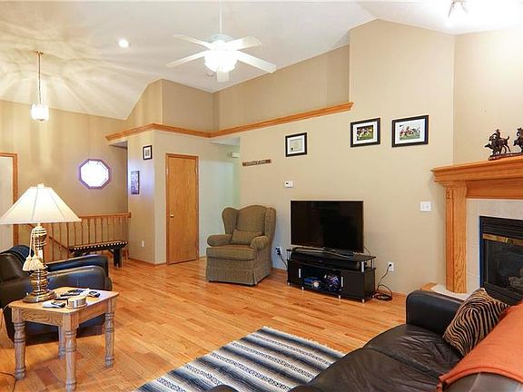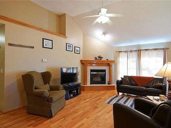 Gorgeous raised ranch w/three-car garage! Covered front porch! Gleaming hrdwds as you enter! Fireplace & vault ceilings in the family room! Spacious kitchen w/tile back splash & stained cabinets! Big master suite w/walk-in closet & private bath w/glass shower, NEW VINYL floor, &double vanity! Big bedrms w/ceiling fans & hall bath w/generous-sized vanity, new vinyl & shower/tub! Finished rec rm w/concrete floor great for craft rm & half bath! Big corner lot; 140 square feet storage shed, patio, &private fenced yard!