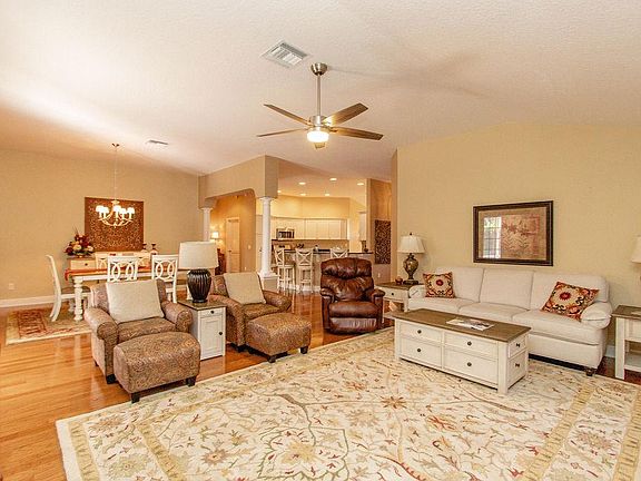 Check out this "NEW TO THE MARKET" home that's being offered 100% turnkey. The only thing standing between this beautifully decorated home and the heart of The Villages (Lake Sumter Landing) is one round about! Just imagine walking to the nightly entertainment with your favorite beverage in hand or maybe you want to ride your bike to Starbucks for your morning coffee & paper. This rare gem is nestled in one of the most saught after neighborhoods The Villages has to offer, Village of Caroline. Now that you're excited about its convenient location let's dive right into the home itself. Beautiful hardwood floors throughout, hand selected granite counter tops that blend perfectly with the enhanced kitchen cabinetry. Beautiful windows complimented with plantation shutters give it that touch of class any renter is sure to appreciate during their stay. The interior has "professional decorator" written all over it. This is the type of furniture & decor that you don't often find in rental properties. The split floor plan make it easy to hide from family & friends when they decide to pop in for a visit. The home was built on a cul-de-sac giving it privacy between it and its neighbors. The outdoor lanai was enlarged, tiled and enclosed making it a year round room with limitless protentional to make those everlasting memories. Folks, everyone likes to go to Disney but few want to live inside the park so if you want to be just an arms length from all The Villages has to offer then you might just be the renter this high end designer home is searching for. Call today and book your stay because this home won't go unnoticed for long! Available starting May 1st 2020 - Dec 31st 2020 @ $3,000 per mth (This includes sales tax) , $1500 security deposit 2021 Winter mths, consecutive mths only for peak season, $6,000 per mth (This includes sales tax) , $3000 security deposit Lease includes Lawn and Irrigation maintenance, Pest Control, A/C filter maintenance, HOA Fees.