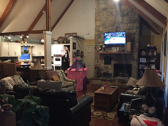 DRAMATIC TWO STORY CONTEMPORARY WITH HARDWOOD, STONE FIREPLACE, SOARING CEILING & BEAMS! THREE BEDROOMS, 2 1/2 BATHS PLUS A FINISHED BASEMENT WITH FIREPLACE AND WET BAR. LOCATED ON A SLOPING LOT IN A NICE AREA CLOSE TO EVERYTHING YET WITH A FEELING OF SECLUSION.