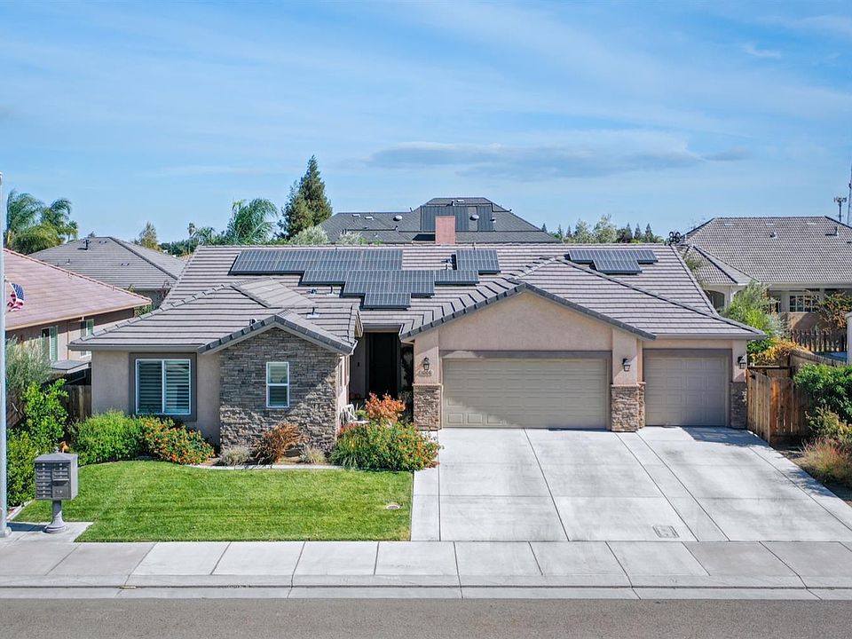 This traditional ranch style home is custom built and nestled in one of the Central Valley's most desired communities. 4 bed, 4 bath, 2,611 sf home with 3 car garage. Spacious open floor plan with large dining island and stainless-steel appliances. Built in 2015 this home features in-law's quarters with 1 bed/bath, living room and private entrance. Water filtration and conditioner system with reverse osmosis for clean drinking water. Dual pane windows, custom soft close cabinetry throughout, granite counters, master suite with 2 walk-in closets and so much more. Enjoy sunsets from your own private oasis in your backyard made for all of your entertainment needs. Solar heated Pebble Tec pool/spa with sheen finish, PAID solar for all your electrical expenses - ZERO power bill. Located just down the street from Weston Elementary and parks, this is a home you do not want to miss!