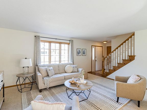 The main floor includes a living room, dining room, kitchen with a large island and eat-in dining space, vaulted family room with a gas fireplace, 1/2 bath, laundry, and utility sink! The lovely kitchen includes features such as roll-out shelving and beautiful quartz counters.