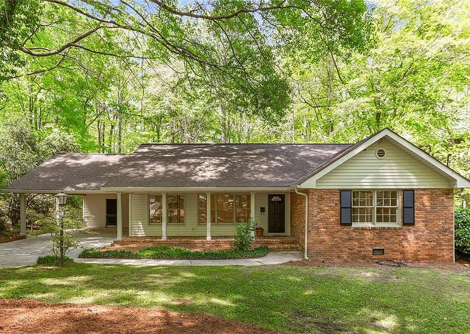 Tucked away on a quiet cul-de-sac street, this updated ranch backs up to and overlooks Thompson Park. This lovely home combines the best of modern living while retaining the charm of its mid-century roots. This home shines with beautiful hardwood floors throughout and fresh paint. Enter from the front porch to the combined formal living room and dining room with crown molding. The updated kitchen features granite countertops, stainless appliances, and abundant custom cabinets which includes a butler's pantry for additional storage. The kitchen opens to an informal family room anchored by a decorative brick fireplace. The primary bedroom has an en suite bathroom. Two additional bedrooms and a full bath complete the house. Step through the door in the family room to discover a spacious flat, fenced backyard with patio ideal for outdoor entertainment and play space. There is two-car carport off the kitchen. The HVAC is new (2023). Venture out to all of the nearby attractions including Thompson Park, Mason Mill Park which contains a 120-acre forest with a network of hiking and biking trails, Lullwater Park at Emory, Daniel Johnson Nature Preserve and Morningside Nature Preserve. The home is convenient to all three Emory Hospital campuses, Emory University, Children's Healthcare of Atlanta and the CDC plus Toco Hills, Virginia Highland and downtown Decatur for an abundance of shopping and dining. Don't miss this beautiful home in an ideal location.