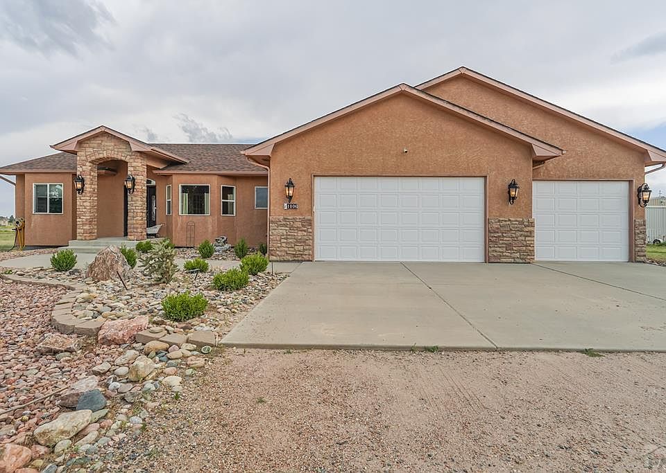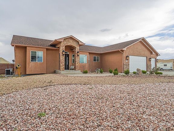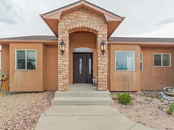 Welcome to this 2005 Parade custom built 5/3/3 ranch home! Home sits on a 1.43 acre corner lot w/ with boasting mountain views and just minutes from Pueblo Reservoir. As you enter into the homes wood floored formal entry you will find access to a private French doored office and be WOWed by the homes airy floorplan that includes a gracious living room w/ vaulted ceiling, 2-way fireplace that back up to a covered back porch; a FABULOUS chefs kitchen; and 3 wall windowed formal dining room space. Kitchen includes hickory cabinetry, granite counters, breakfast bar counter, stainless steel appliances, gas/range oven with hood, pantry & a brick counter-to-ceiling brick accent wall. Tucked away on the main level you will also find 2 large guest bedrooms (both adjacent to a full hall bath); a centrally located mudroom/laundry room; & a MASSIVE primary bedroom retreat that includes: coved ceilings with LED lighting, wood floors and a private 5 piece bathroom that additionally includes a tiled step-in shower, soaking tub, dual vanities, tiled flooring and access to a large walk-in closet. In the basement you will find a family room boasting 9' ceilings and surround sound system, wet bar, craft room; storage room, and 2 privately tucked away bedrooms( both also adjacent to a 3/4 hall bath). This home is LOADED top to bottom with luxurious details that our description could carry on and on, but simply this home is one of Pueblo Wests' finest and a must see!