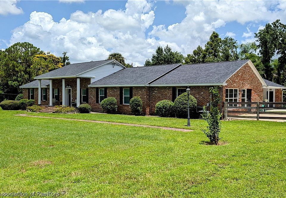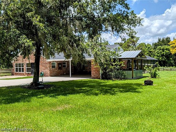 3B/4B Red Brick Home with Screened Saltwater Pool on 6 Acres in Hardee County! A paved driveway lined with beautiful mature oaks leads to this spacious 4,335 square foot home that sits within the Wauchula city limits. In addition to being updated in its entirety, the house has a new roof and new vinyl windows. One of the many bonus features of this home is that each bedroom as well as the laundry room has its own full en suite bathroom. The kitchen layout openly flows into the dining and living area and features a double wall oven and an island with a cooktop and bar seating. Some of the other highlights include a wood burning fireplace, plantation shutters, tile/hardwood floors, a 14x14 office space and a 20x21 game room/den. An outdoor kitchen is located just off the screened, saltwater pool area for all your grilling and outdoor entertaining needs. Other structures on the acreage include a 36x36 horse barn and a 2 bay dog pen. The property has a small, scenic sandy bottom creek running through and is completely board/horse wire fenced making it ready for livestock with plenty of improved pasture grazing. This beautiful home and property has been meticulously maintained and cared for.