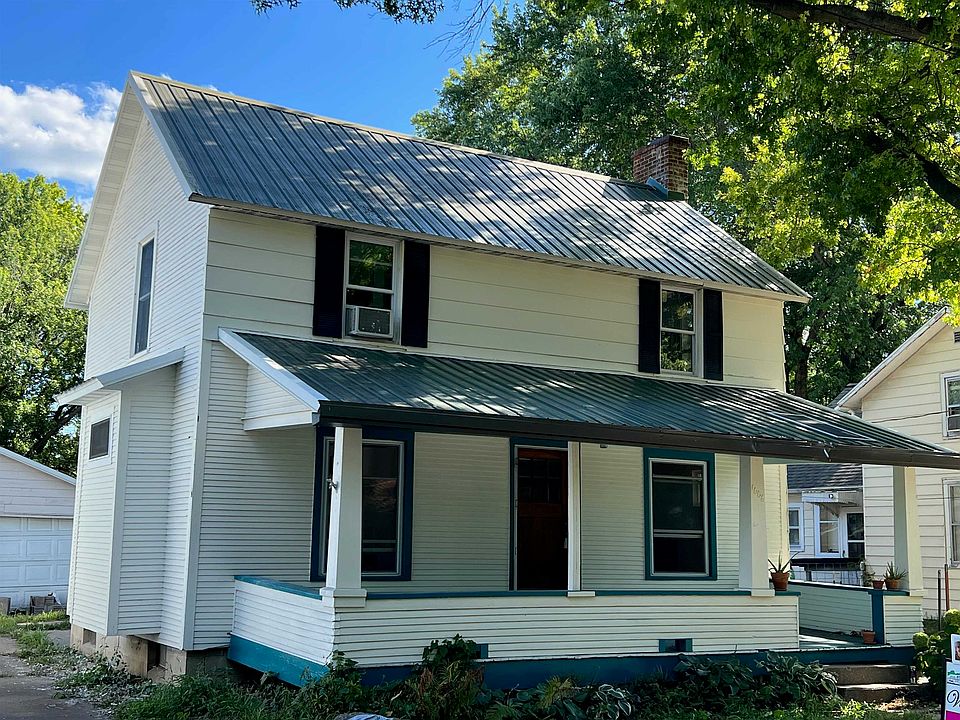 This sweet North facing home is on a quiet street and is full of light. Totally remodeled kitchen with beautiful copper farm sink, polished concrete countertops and high quality stainless steel appliances. Hard wood floors throughout! Wood stove insert! Updated windows! Freshly painted porch! Technically a 2 bedroom, but can serve as a 3 bedroom with 2 of the rooms sharing a doorway. 1 full bathroom. Spacious 2 car garage. Nice sized yard with chicken coop included. This sweet happy home is located close to a park and the pickle ball courts and is on the edge of town. Walk a couple blocks and you can enjoy the beautiful Iowa sunset over a field. Come check it out!