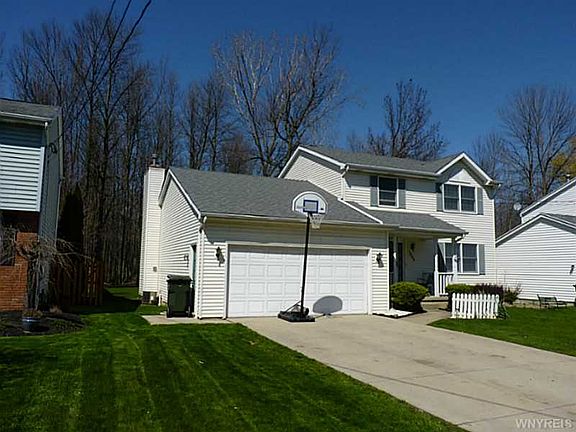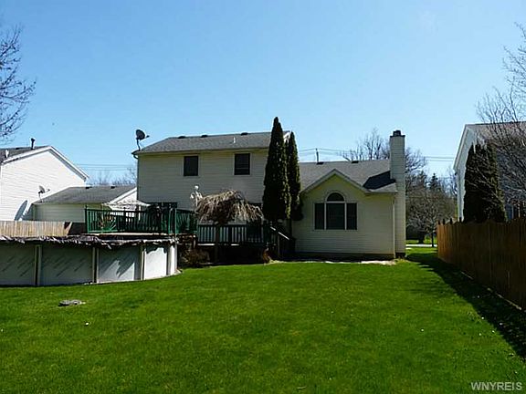 Country living in the city with no neighbors in the back. This maint. free three bedroom Colonial backs up to a treed lot. The large eat in kitchen leads into family room w/gas fire place. Dining room and living room gives you space for those family gatherings. Full dry basement offers a 12X12 room. In the warmer months enjoy the two tired deck that connects to the above ground pool and is wired for a hot tub. Down the street from Deerwood Golf Course.