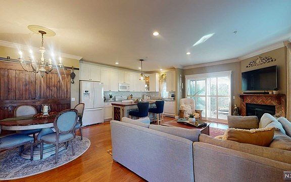LOCATION,LOCATION,GATED COMMUNITY CLOSE TO TRAIN & TOWN. THIS CONDO IS IN ONE OF THE BEST SPOTS IN THE DEVELOPMENT. SPACIOUS END UNIT CONDO APPROX 1229 SQ FT, 9' CEILINGS, W/FINISHED BASEMENT ADDING APPROX 360 SQ FT UTILIZED AS A FAMILY ROOM. A PRIVATE COVERED SIDE ENTRANCE NEXT TO COMMON AREA GREEN SPACE. MANY UPGRADES INCL; WOOD FLOORS THROUGHOUT, CUSTOM KITCHEN ISLAND FEATURING EXOTIC AFRICAN BUBINGA WOOD COUNTERTOP, UPGRADED KIT CABINETS W/GRANITE COUNTERTOPS, CROWN MOULDING ,CUSTOM WOOD BLINDS ON ALL WINDOWS,CUSTOM WOOD SHUTTER DOORS ON SLIDER TO PATIO,BRICK HERRING BONE SURROUND GAS FIREPLACE. PELLA WINDOWS & DOORS. BONUS FINISHED BASEMENT. CLUBHOUSE HAS A COMMUNITY RM,CARD RM,CHANGING ROOMS,EXERCISE RM,PLAYGROUND & HEATED POOL.CLOSE TO HOUSES OF WORSHIP,ENJOY ALL THE PARKS ALLENDALE HAS TO OFFER,THE CELERY FARM, A NATURE PRESERVE, CRESTWOOD LAKE, A 76 ACRE RECREATIONAL PARK W/PLAYGROUNDS, SPORTS FIELDS,TENNIS COURTS,ICE SKATING RINK,RED BARN & SPRING FED LAKE & SANDY BEACH!