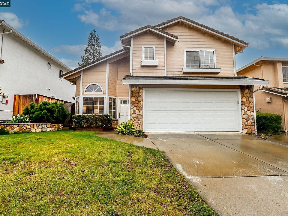 Popular neighborhood close to large park with walking paths, duck pond, Bocce courts & playing fields. This home is on a quiet court location & features high ceilings & attractive windows which creates lots of light & an open design. Enjoy the bright living room & comfortable family room with brick fireplace. The kitchen has a double oven, a new cook top and a spacious pantry. Eat casually at the breakfast bar or in the convenient dining area. The interior has been freshly painted and has easy care Wilson Art floors in most of the living areas. The primary bedroom has high ceilings, new blind & double closets with new mirror doors. The bathroom has a tub as well as separate shower stall and spacious double sink vanity. The hall bathroom has been recently updated including new flooring. The backyard has a relaxing water feature, 5 redwood trees and mature junipers with lots of privacy. It is the perfect space to entertain or just relax. Don't miss attic storage too! This community offers a pool & tot lot, and has shopping and restaurants close by.