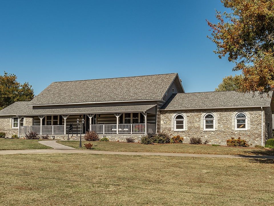 Think about this for a moment--rustic charm + modern comfort, add in the rocking chair front porch, setting on 1.84 acres surrounded by natural beauty--and you've just created the perfect formula for an intimate, relaxing atmosphere to call home! Gorgeous stone and log construction! Meticulously maintained! Interior boasts of wood floors, exposed beams and logs, stone fireplaces, and sunroom with full view! Main level offers open family room/dining with gorgeous stone fireplace, Kitchen with cozy breakfast nook, fireplace & stainless appliances (including new induction cooktop), fabulous Sunroom, primary Bedroom/Bath suite plus one secondary Bedroom/Bath and Utility Room! Upper level offers the perfect guest suite or teen getaway with loft area, third bedroom/third bath plus flex room! 3 Car Garage attached with attic access! 3 Car Carport! Liberty Creek Schools! Convenient to Long Hollow Pike/Vietnam Veteran's Blvd.!
