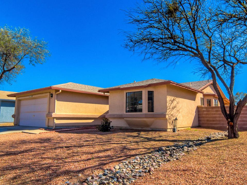 Nice Upgraded Home with Newly Remodeled Kitchen, New Shingle Roof & All New Plumbing! Home features open floor plan with spacious Family Room, soaring vaulted ceilings, custom polished flagstone floors throughout main living areas, new carpet in bedrooms, fresh interior paint, brand new shingle roof, poly plumbing replace with all new plumbing and much more. Remodeled Kitchen offers rich wood cabinets, stylish countertops and coordinated appliances. Bay window breakfast area just off the kitchen. Spacious Master has custom cove ceiling, bay window and full bathroom with dual sink vanity. Spacious backyard with covered patio and brick sitting area. Only one block from neighborhood center that offers refreshing pool/spa and two covered ramadas.