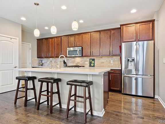 An absolutely stunning townhome with patio in the sought after Meridian Village with glistening hardwoods on the main floor. This home offers an open floor plan with an office, spacious kitchen, family room and dining room area. This lovely family home is like new. All the designer touches including beautiful window treatments, gorgeous hardwoods, and a great patio area. There is an office on the main level, but there is also a small loft for the kids or an additional tv area upstairs. There is also extra room in the unfinished basement. This home is nestled in Meridian Village which includes open space, grassy front yard that HOA mows for you! The HOA also includes trash and snow removal. This community is private but has a pool, parks and walking paths. Small fenced side yard for privacy. Oversized Garage. Awesome walking/bike paths, shopping, and parks... everything at your finger tips. Close to I-25 and Parker.!