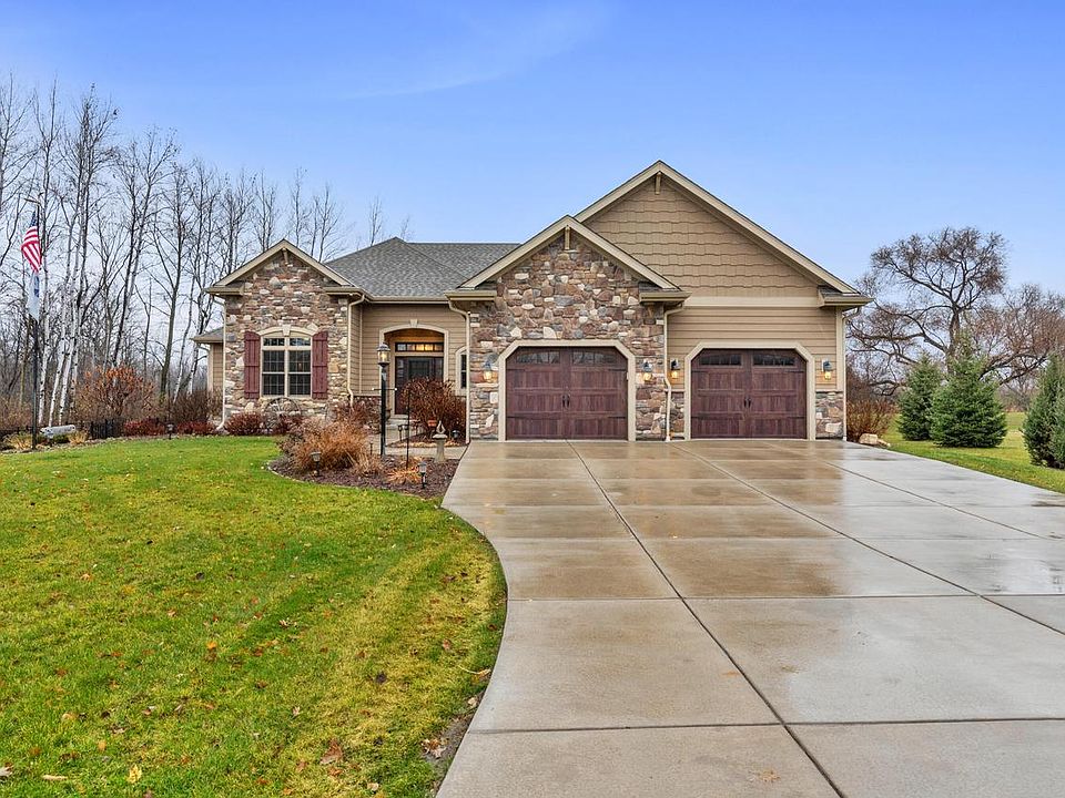 Custom 3 bed 3 bath split ranch in the country, minutes from downtown Cedarburg. As you approach enjoy beautiful curb appeal of the fieldstone facade & landscaping All on a 3 acre wooded lot.Upon entering you'll be greeted by open concept kitchen, living & dining rooms that include a gas fireplace, soft close cabinets, granite counters. The split design has a large primary bedroom suite that features a jetted tub, tiled shower stall, dual vanity, walk-in closet & recessed ceiling. A separate office and mudroom are located off the garage entrance. Two bedrooms & full bathroom on the other side complete the main level. The partially finished lower level has rec & exercise rooms, office space & full bath. The pups will enjoy a fenced rear yard w/concrete patio & 16'x24' shed.