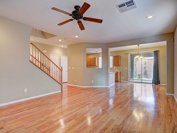 Very popular model of KB homes nestled in the southwest community of Mountains Edge Community. Awesome 1,668 approx. sq. foot home with 3 bedrooms, 2.5 baths, loft and 2 car garage. Interior includes wood flooring, dual sinks in master with separate tub and shower. Secondary bedrooms have closet built-ins. Ceiling fans throughout. Backyard has a covered patio and synthetic grass.