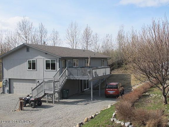 Single family home on close to an acre of land. Almost 3,000 sq. ft. Amazing schools nearby. Amazing mountain views and great fishing spots close by. Not far from the Parks and Glenn Highways. 45 minutes to Anchorage.