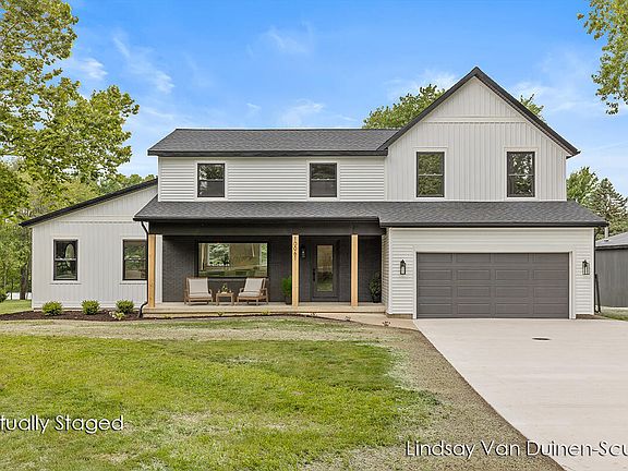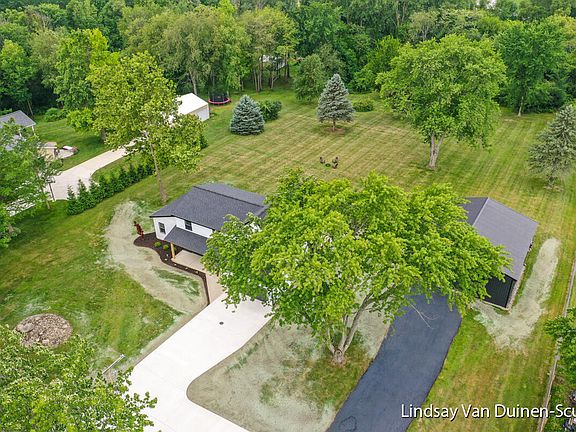 This is the modern dream home you have been waiting for! Stunning Byron Center 4-5 bedroom home, 3.5 baths on an expansive 2.48 acres with a 36x40 outbuilding (with 12 ft ceilings)! This stunning estate has been transformed both mechanically and cosmetically from top to bottom with 2 additions plus new siding, windows, roof, central air, water heater & electrical service. The cosmetic updates are also sure to impress. The kitchen is spectacular with 2 striking picture windows overlooking your beautiful acreage, white shaker cabinetry, custom built hood, counter to ceiling tile backsplash, granite counter tops, bar seating and stainless-steel appliances. The walk-in pantry is dreamy with plenty of space for storage and electronics plus space for an additional beverage fridge. main floor features a cohesive living space with the dining area featuring a large picture window overlooking the front porch and yard. The main floor living room addition has vaulted ceilings with wood beams and beautiful windows flaking the accent wall and sliders to a small landing with access to the backyard. There is also a second family room on the main floor with a sleek arched accent wall showcasing the modern fireplace. This cozy room also has sliders to the backyard that steps out onto a new concrete patio. The upstairs has an enviable owner's suite addition with cathedral ceilings, custom detailed accent wall and a bathroom that will leave you speechless featuring floor to ceiling tiled shower, private water closet, walk in closet and double vanity. Additionally, upstairs you will find a 2nd floor laundry room, 3 additional bedrooms with good size closets and the 2nd full bathroom. The lower level has a great hang out tv space, 3rd bathroom, 2nd laundry hook ups plus an additional area that could be used as a 5th bedroom/office or flex space. Wonder outside to enjoy your own piece of paradise with fantastic yard space backing up to a wood tree line lots. Still so much time to enjoy the rest of summer and the upcoming fall months. If you aren't sold yet don't miss the 36x40 outbuilding which is a blank slate and will give you the opportunity to finish it off to meet your needs. It does have electrical, wood stove, and a water pump in the barn plus a garage door opener and 2 overhead doors (10 high by 16 ft wide and 11 ft high by 10 wide). You don't want to miss this home!