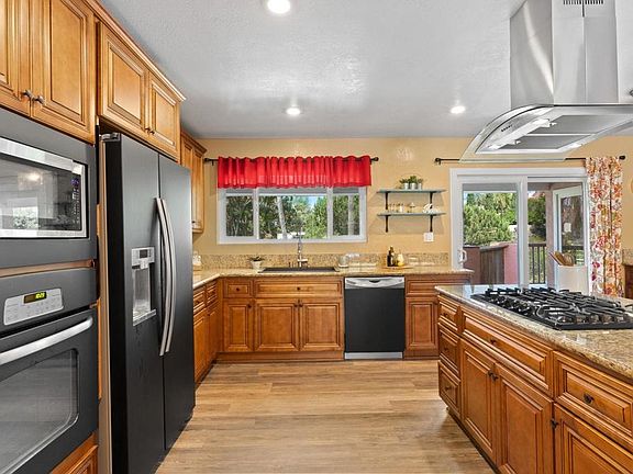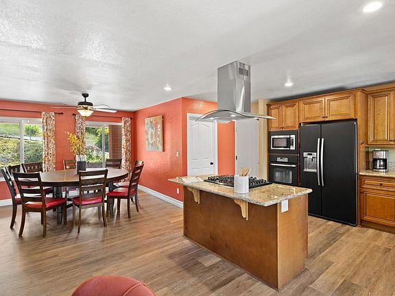 Welcome to your sanctuary, nestled in the highly sought-after community of Mt. Helix. This home is situated in a small gated neighborhood of Helix Crestview Estates at the end of a private street with beautiful canyon views. The heart of the home is an open kitchen, with maple cabinetry an island & granite countertops, inviting you to unleash your culinary creativity and host unforgettable gatherings. Unwind in the primary suite on the main level, a haven of tranquility with its own private fireplace, featuring dual closets. The en suite bathroom boasts a Jacuzzi tub, with an adjacent shower finished in travertine tile. All three full bathrooms in the home feature dual sinks & granite counters. The flooring has been updated throughout all main areas and bedrooms with luxury vinyl plank flooring. The property offers 2 flex spaces. One is a large room, currently used as a bedroom. The second flex space has its own separate entrance. It can be additional living space, office space or a game room and is approximately 477 sq ft. Immerse yourself in the beauty of your surroundings as you bask in canyon views on the expansive deck which spans the entire length on the back of the home. There are multiple options for outdoor entertaining. The second deck overlooks the canyon, the turfed yard, and pool area. Pool is secured with a security fence. Additional features included fully owned solar, dual-zoned a/c for each level, and two water heaters. In addition to the garage there is a covered carport for 2 additional cars. HOA allows boat/RV parking in driveway. There is plenty of parking outside of the home on the long private driveway. Floor plans show additional square footage than what is on record with the county. This is not guaranteed and should be verified by Buyer.