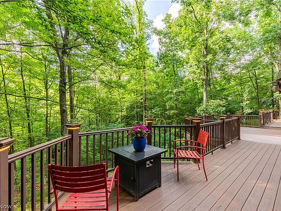 OPEN HOUSE SUNDAY 2-4 Welcome to your new home that is nestled on 2.4 acres of National Wildlife Federation certified wildlife habitat. This one of a kind 5 bedroom, 3 full bath home that provides a private sanctuary. As you enter the home through the foyer notice the 2 double French doors which bookend the natural stone, wood burning fireplace. Out onto the newer, expansive composite deck which runs the entirety of the 74 feet length of the home. The 18 1/2 foot ceilings grace this timber framed iron and wood home. The hardwood flooring runs through out the main floor. A chef's kitchen with a walk in pantry and 3 ovens, stainless steel appliances, center granite kitchen island which flows nicely into the spacious dining room. The master suite offers a glimpse into nature with a set of French doors inviting you into nature while listening to the babbling water feature below. Two additional nice size bedrooms and full bath complete the main floor. The lower level offers a graciously sized recreation room with a wood burning stove and sliding doors leading you onto a patio overlooking the beautiful treed and landscaped backyard. Two additional bedrooms in the lower level both offering walk in closets and full size windows. A full size bathroom in the lower level. Oversized laundry room has direct access to backyard and additional storage space. Many features of this home have been recently updated including roof(2021), gutters(2023), downspouts(2023), composite decking(2020). The owner has great pride in 30 years of meticulous maintenance and landscaping. This home is ready for new memories and will sell quickly!