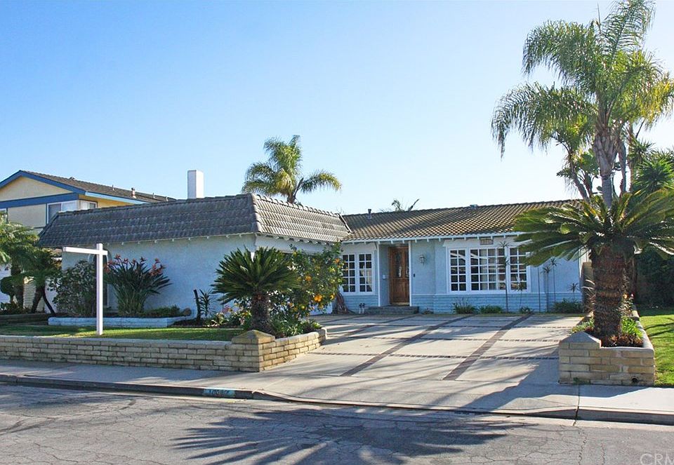 This Beautiful Beach-Close Single Story 4 Bedrm Pool Home is Move-In Ready with All New Paint, Beautiful Wood Laminate Flooring, French Windows, and a Light Bright Open Floorplan w/Vaulted Ceilings. It is Situated on a Quiet Inside Tract Location in a Very Family-Friendly Neighborhood w/Highly Sought-After Schools (Hawes, Sowers, Edison). Beautiful Curb Appeal w/Lovely Gardens & Brick-Accented Sweeping Driveway. Custom Entry Door w/Beveled Glass Opens to Tiled Foyer w/Mirrored Wall Accents & the Huge Formal Living Room. The Lovely Sunlit Kitchen Boasts Tile Flooring, White Cabinetry & Pantry, Stainless Sinks, Stainless Appliances Including Gas Range with Double Ovens, Built-In Microwave, and Dishwasher. The Kitchen has a Long Breakfast Bar and Overlooks the Spacious Family Room with Crackling Fireplace and Wall of Wood Sliding Glass Doors with Beveled Edging and Pool Views. Adjacent to the Kitchen is a Lovely Dining Room that is Open to Both the Living Room and the Family Room. The Master Suite has a Walk-In Closet, Ceiling Fan, and Ensuite Bathroom with Designer Tile Flooring and Wall Sconce Lighting. There are also 3 Secondary Bedrooms with Ceiling Fans & 2 have Mirrored Closets. Large Guest Bathroom has Tile Floor, Countertop, and Tub/Shower Combo Surround. North Facing Home so Backyard stays Sunny All Day with Sparkling Pool & Spa, Grassy Side Yard & Patio/Deck Area all Ready for BBQs & Entertaining. The Perfect Beach Home, Close to Shopping, Restaurants, Parks & Beach!