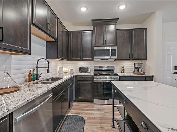Experience modern living in this almost brand new, barely lived-in condo built in 2023. Well laid out floor plan that feels bigger than it is with thoughtful use of space. Closing Cost & Down Payment Grant available for eligible buyers for this unit up to $17,000. This newly developed south side of Chatfield Bluffs has recently been completed by Lokal homes & is designed for a maintenance-free living with a focus on quality & durability. The construction of the new units consists of individually engineered foundations, improved insulation walls and floorboards, providing better soundproofing than older units as well as technological advances & energy efficiencies that include improved AC, Navien tankless hot water heater, high-efficiency gas furnace, Smart WiFi thermostat, smart video doorbell system, LED low-Profile lighting, wide plank LVP flooring, 42” upgraded birch cabinets, cortz counters, tile backsplash, blinds, upgraded Samsung appliance package with gas stove & full-sized stackable Samsung washer & dryer. Additional seller added upgrades include a wine rack, high-end sink faucet, under-mount lighting & dimmers, living room chandelier, a barn door for the primary bathroom, keyless entry lock, drapes & HD TVs in the living room & primary suite. Amenities include a clubhouse, swimming pool, oversized hot tub, fitness center & a new playground. Enjoy the primary suite & bath with an upgraded overhead shower & a walk-in closet. The 2nd bedroom features a queen Murphy-bed with built-in desk, doubling as an office during the day. The kitchen has a closet pantry, and a heavy duty high-end durable kitchen island with a pull out extender for dining or entertaining. The private balcony has two outdoor storage closets. This unit is on the second floor, accessed by only one flight of stairs avoiding direct views of the cars out your window. Located near grocery stores, restaurants, Chatfield Reservoir & Deer Creek canyon Road with quick hwy access. Littletoncondo.com
