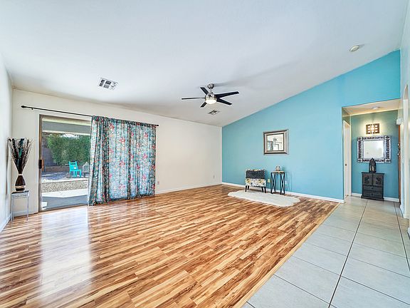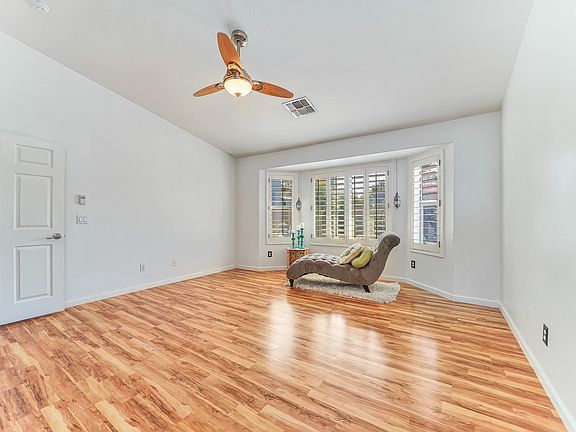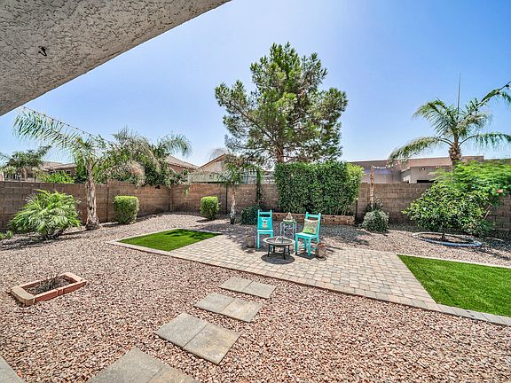 Welcome Home to this gorgeous 1559 sqft 3 bed, 2 bath 2.5 car garage Gem!Step inside and you will be greeted with a beautiful chandelier, tile and laminate flooring throughout, vaulted ceilings, classic white shutters, upgraded light fixtures, ceiling fans and updated interior paint. Baseboards and door hardware have been update as well as fresh paint in closets, pantry and laundry room. Large eat in kitchen featuring a pass through to the living room, kitchen island, updated stainless steel appliances, built in microwave, electric stove and pantry. The living room boasts vaulted ceilings, updated ceiling fan and a flexible floorplan. This beauty is a true split floor plan with the secondary bedrooms to the left with the secondary bathroom that features a shower tub combo, tasteful gray vanity cabinets and bead board accent walls. The large master boasts a vaulted ceiling, large walk in closet, water closet, double sink vanity and a soaking garden tub/shower combo. The manicured backyard oasis features a covered patio, paver extension, curbing around mature citrus trees, paver entertaining island with synthetic grass, bamboo garden and paver walk way to the veggie garden. A 40 amp has been ran to the backyard pad, perfect for a future spa, stylish hanging lights with dimmer switch, outdoor grill lighting and a TV mount on the back patio. The 2.5 car garage features epoxy flooring, pre plumbed for an RO system and sink, fresh paint and a wall of built in cabinets. Talk about curb appeal, the front yard has recently been updated to include curbing islands, synthetic grass, and a side paver driveway extending to the back yard through the 10 ft double gate. The water heater was replaced in 2018 and front landscaping updated in 2019. Close to schools, the US 60 and Loop 202, shopping, entertainment and so much more!