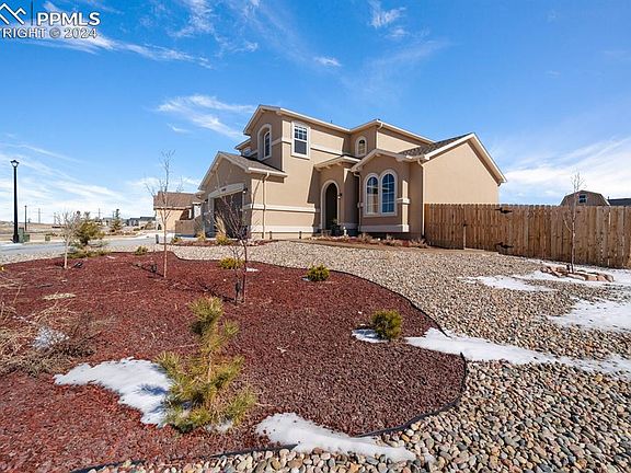 If you have been searching for a stunning 5 Bedroom Home on a nearly ½ acre lot with all the upgrades … your search is over! This meticulously cared for Montarbor model by award-winning Campbell Homes is nestled in the community of Paint Brush Hills- built to impress with a 3 car extended garage & RV Parking on the side of the fenced backyard. Exceptional living spaces combine "flow and function” in this 2 story home with finished basement boasting 3,800+ sq ft of living space. The grandeur of the home begins as you enter the front door- vaulted ceilings, formal Dining & Living Rooms, wood laminate flooring (main level), and large windows overlooking the breathtaking view of Pikes Peak. The heart of this home- the Chef’s Kitchen, includes granite countertops, newer appliances (2021- included), an abundance of cabinets, and an oversized island Breakfast Bar. The Great Room has a gas fireplace and box bay window, showcasing the spacious backyard. A formal Study with glass French doors, Powder Bathroom, & Laundry Room (washer & dryer included) complete the main level. The upper level features an open loft space before entering the expansive Master Bedroom, with 5pc en suite Bathroom complete with soaking tub & walk in closet. An additional two Bedrooms & Bathroom complete the upper level. The fully finished basement is perfect for entertaining and boasts two Rec Rooms, complimented by a stone wet bar (mini fridge) and included 135” 4K/8K Ultra HDR Projector Screen & Home Cinema Projector for the ultimate experience! An additional two Bedrooms (walk-in-closets) & bathroom complete the basement. BONUS! The spacious backyard features stamped concrete leading to the finished Storage Shed (“studio”- with electrical) along with a fenced garden area. The Gazebo above the concrete patio (ready for Hot tub-wired 220V) completes this outdoor living space! You have to check this home out in person- don’t miss the opportunity to snatch this dream home up!