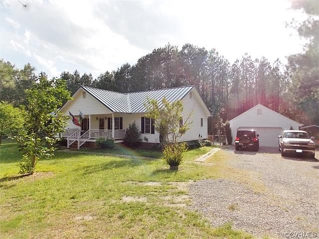 3 Bedroom, 2 bath dream home in the country on 18+ acres 1-mile from Dinwiddie Schools boasts: welcoming country porch, spacious living room, huge eat-in kitchen w/plenty of cabinets, large laundry room that leads to the oversized-deck, family room w/vaulted ceiling, master bedroom w/walk-in closet and large master bath, oversized carport, newer generator (1yr old) that runs everything but the A/C, metal roof (2 years old), 2-car detached garage and a portion of the backyard fenced for children and/or pets to play. The yard around this home has been landscaped and attracts plenty of wildlife, the remaining acreage had been naturally wooded. This dream home has been nestled on a private road and is still conveniently located. Put this home on you to see list.