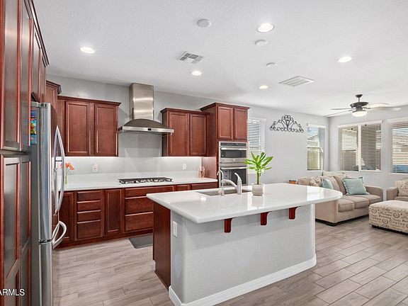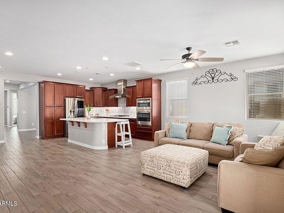 This home could be yours!!! Captivating Shea-built Single-Story home with 3-Bdrm 2 BA + DEN, on a 5400sf lot, in the amazing master planned community of Eastmark. These Shea homes go FAST because of location (Easy walk to the Great Park & both Ponds), quality construction, generous open space and a kitchen that flows, beautiful Cabinets and (Quartz) counter space to host your family and friends. Under Cabinet Lighting w Dimmer, w Soft Close drawers and Staggered Cabinets. Upgraded floor tile t/o and keyless garage door entry. Patio speakers installed.