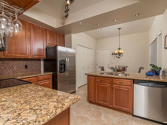 Remodeled two bedroom 2.5 bath town home. Kitchen has been remodeled with Cherry raised panel cabinets, Granite counter tops. Newer bath fixtures. Tile surround in master bath tub and shower, also Double sinks. This home sparkles. Two master suites. Tommy Bahama inspired decor. Fireplace in Living room. Vaulted ceilings, formal dining room, and eat in kitchen. Fresh paint in the kitchen and breakfast nook. Private patio with lush landscaping, and citrus trees. Two car garage. Home is close to the pool. Easy access to freeways and shopping. Furnishings available by separate bill of sale