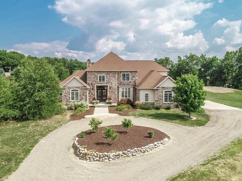 Welcome to Garrison Manor, the number 1 house of the 2006 Parade of Homes. This exquisite 4 bedroom, 3 full, 2 half bath home is located in the middle of a 21.26 acre lot. As you enter the grand front entrance of double 10 foot hardwood doors, the foyer with 20 foot ceilings welcomes you to the meticulously maintained home. 10 foot ceilings in the kitchen, dining and office emphasize the room dimensions. Gorgeous hardwood floors escort you to the living room where a stone fire place extends 20 feet from floor to ceiling. The master suite offers an enormous master bath with a large free standing soaking tub, flush mounted shower heads in the ceiling, double sinks, and a large walk in closet. The completely upgraded kitchen is equipped with a Jenn-Aire cook top that includes an indoor grill, double convection ovens, and a huge stainless refrigerator. DecorÃf¡ cabinets are accompanied by soapstone countertops, and a back splash made from slate roofing repurposed from MSU's Olds Hall. Entering from the 2+ car garage, your welcomed be a spacious drop zone including a separate half bath and laundry room. Up stairs guests will enjoy their own suite including a full bath. Two additional bedrooms that share a Jack and Jill bathroom finish the living area upstairs. Outside you will enjoy entertaining on the two patio spaces, especially on the elevated patio that has an outdoor fireplace. An outside kitchen has a new propane grill top and custom concrete counter top. A large 32 X 64 pole barn has three garage doors with openers, a separated workshop and additional loft storage. Raised gardening beds are located behind the barn. A large hunting blind/playhouse can be found in the south east corner of the property. Basement and garage floors are plumbed for radiant heat. Heating system is prepared for Geothermal heating, and the electrical system has a generator hook up for power loss. Lifts in pole barn are reserved.