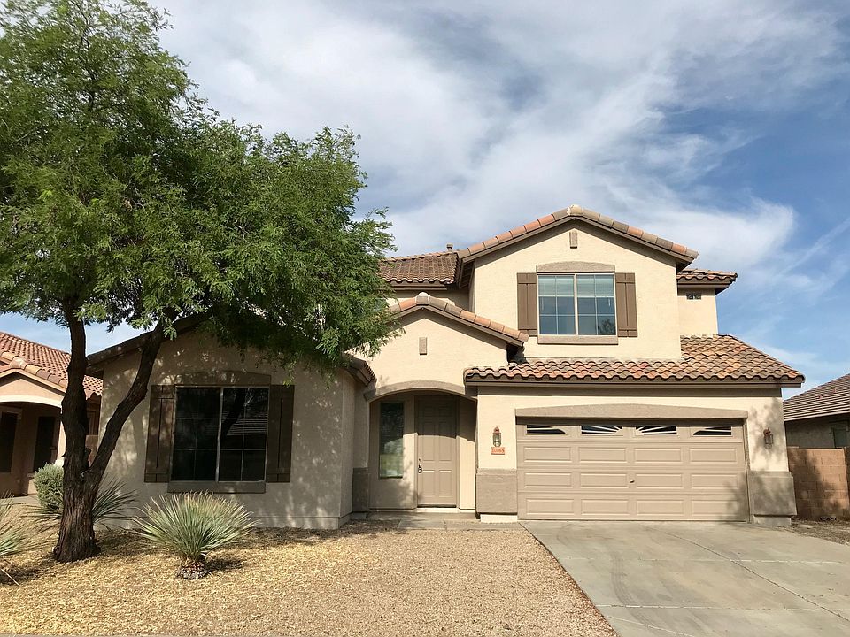 With entirely new exterior paint done June 2019. Open floor plan, high ceiling in living room. The kitchen is huge, with new granite counter tops and mosaic backsplash. Stainless steel smooth top oven, dishwasher, and microwave. This home have 4 bedrooms and a den. The den and a full bathroom located downstairs. Ceramic tile on the entire lower level, and wood laminate flooring upstairs. Master bedroom has spacious walk-in closet with new carpet. Enjoy the greenbelt right across the street with kids play area. *Close to 101, grand, Cardinal stadium, Top Golf, Westgate Entertainment and Outlet malls.*