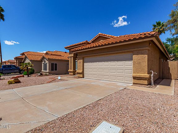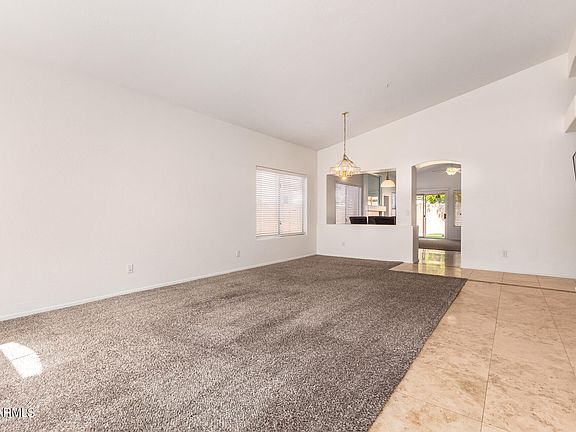 Home, sweet home! This charming 3-bedroom, 2-bath residence features a convenient 2-car garage and easy-to-maintain desert landscaping. The living room showcases vaulted ceilings, a soothing palette, distinctive half-moon windows, and a blend of soft carpet and tile flooring. Enjoy cozy evenings in the great room, which boasts a warm fireplace. The kitchen is equipped with tile counters and backsplash, ample cabinetry, 2024 stainless steel appliances, a pantry, and a two-tier peninsula with a breakfast bar for casual dining. The cozy main bedroom offers direct backyard access, an ensuite with dual sinks, and a walk-in closet. Outside, the backyard has a covered patio for shaded relaxation and pristine artificial turf. Don't miss out on this incredible opportunity!