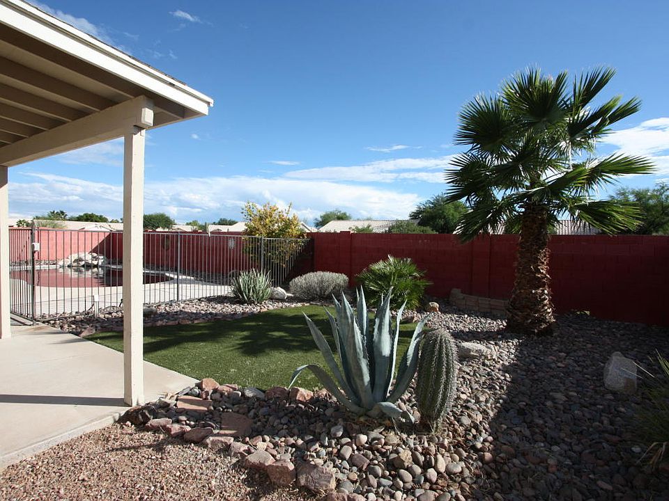 Outstanding updated 3 bedroom, 2 bath home in Rita Ranch! Fresh paint inside and out and plush new carpet. Enjoy the comfortable floor plan, large living area with vaulted ceilings, kitchen with lots of cabinet space, covered back patio, beautiful back yard with sparkling pool and three-car garage. Don't miss this magnificent beauty!